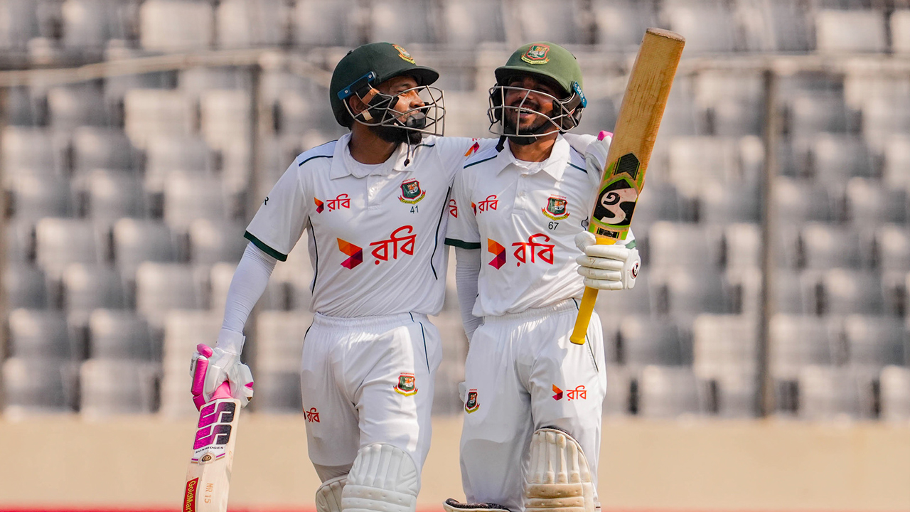 প্রথম ইনিংসের (৮) মতো এবারও ব্যর্থ অধিনায়ক নাজমুল হোসেন শান্ত। ১ রানের ব্যবধানে সাদমানের পর তিনিও ফিরলেন মাত্র ১ রান করে। সিলেট টেস্টের এই সেঞ্চুরিয়ান মিরপুরে চলমান দ্বিতীয় টেস্টের দুই ইনিংসেই দুই অঙ্কের ঘরেও পারলেন না। তার উদ্দেশ্যে জর্ডান নিল বলটি শর্ট লেংথে ফেলেছিলেন, বাউন্স ওঠা বলের লাইন বুঝতে ভুল করেছেন শান্ত। যা তার ব্যাটের ওপরের দিকে লেগে গালি অঞ্চলে থাকা অ্যান্ডি বালবার্নির হাতে ধরা পড়ে।