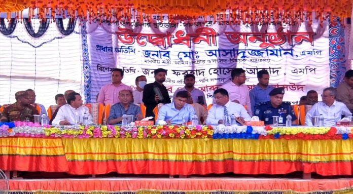 উদ্বোধনী অনুষ্ঠান শেষে আইনমন্ত্রী মো. আসাদুজ্জামান ও পানি সম্পদ প্রতিমন্ত্রী ফরহাদ হোসেন আজাদ ধাওড়া গ্রামের ধলহরা খাল খনন কর্মসূচির ভিত্তি প্রস্তর স্থাপন করেন।