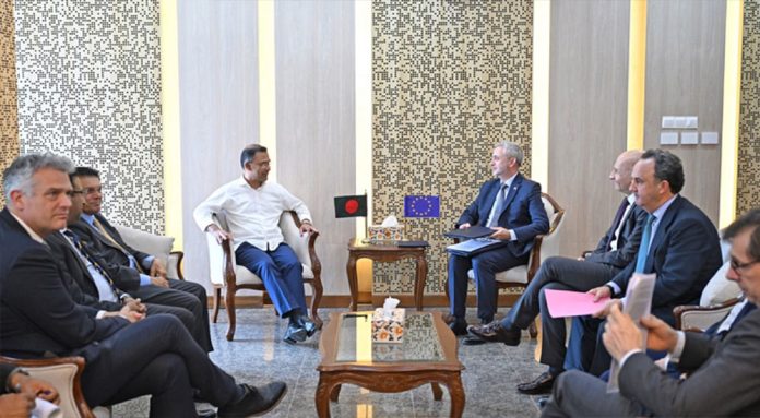 প্রধানমন্ত্রী তারেক রহমানের সঙ্গে সৌজন্য সাক্ষাৎ করেছে ইউরোপীয় ইউনিয়নের একটি প্রতিনিধি দল। প্রতিনিধি দলের নেতৃত্ব দেন ঢাকায় নিযুক্ত ইউরোপীয় ইউনিয়নের রাষ্ট্রদূত মাইকেল মিলার।সোমবার (৬ এপ্রিল) বাংলাদেশ সচিবালয়ে প্রধানমন্ত্রীর কার্যালয়ে এই সাক্ষাৎ অনুষ্ঠিত হয়।