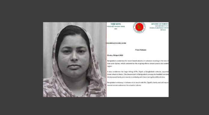 ‘বৈরুতে ইসরাইলি হামলায় দিপালী বেগমের মর্মান্তিক মৃত্যুরও নিন্দা জানায় বাংলাদেশ। বাংলাদেশ সরকার তার পরিবারের প্রতি আন্তরিক সমবেদনা জানাচ্ছে। একই সঙ্গে শোকাহত পরিবারের এই কঠিন সময়ে তাদের সঙ্গে একাত্মতা প্রকাশ করছে।’