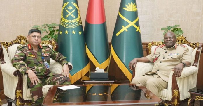 অনলাইন ডেস্ক: মালাউই ডিফেন্স ফোর্স কমান্ডার জেনারেল পল ভেলেন্টিনো ফিরি সোমবার ঢাকা সেনানিবাসের সেনাসদরে বাংলাদেশ সেনাবাহিনী প্রধান জেনারেল ওয়াকার-উজ-জামানের সাথে সৌজন্য সাক্ষাৎ করেন।
